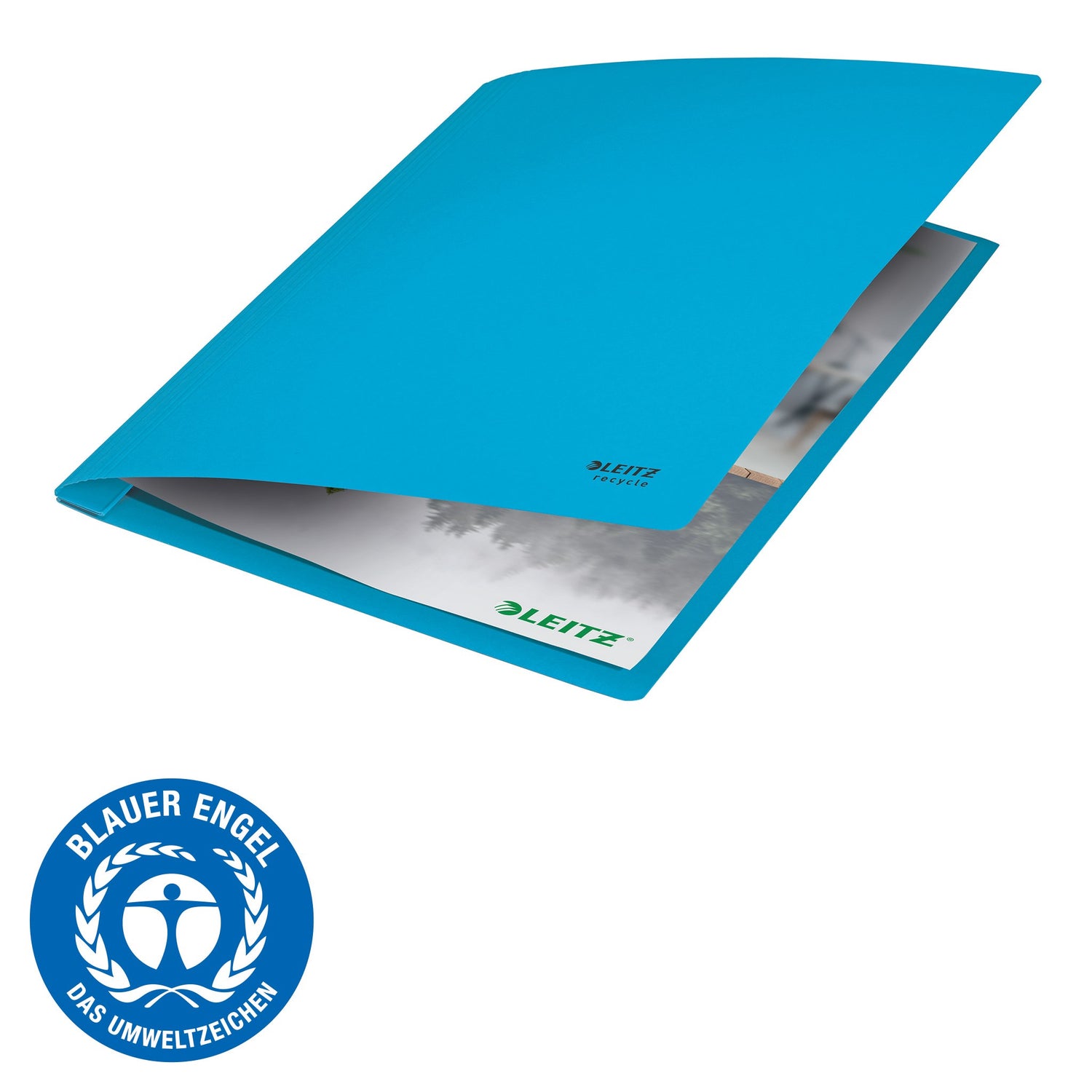 Mappen er lavet af 100% recirkuleret og 100% recirkulerbar karton med Blå Engel miljøcertificering.
