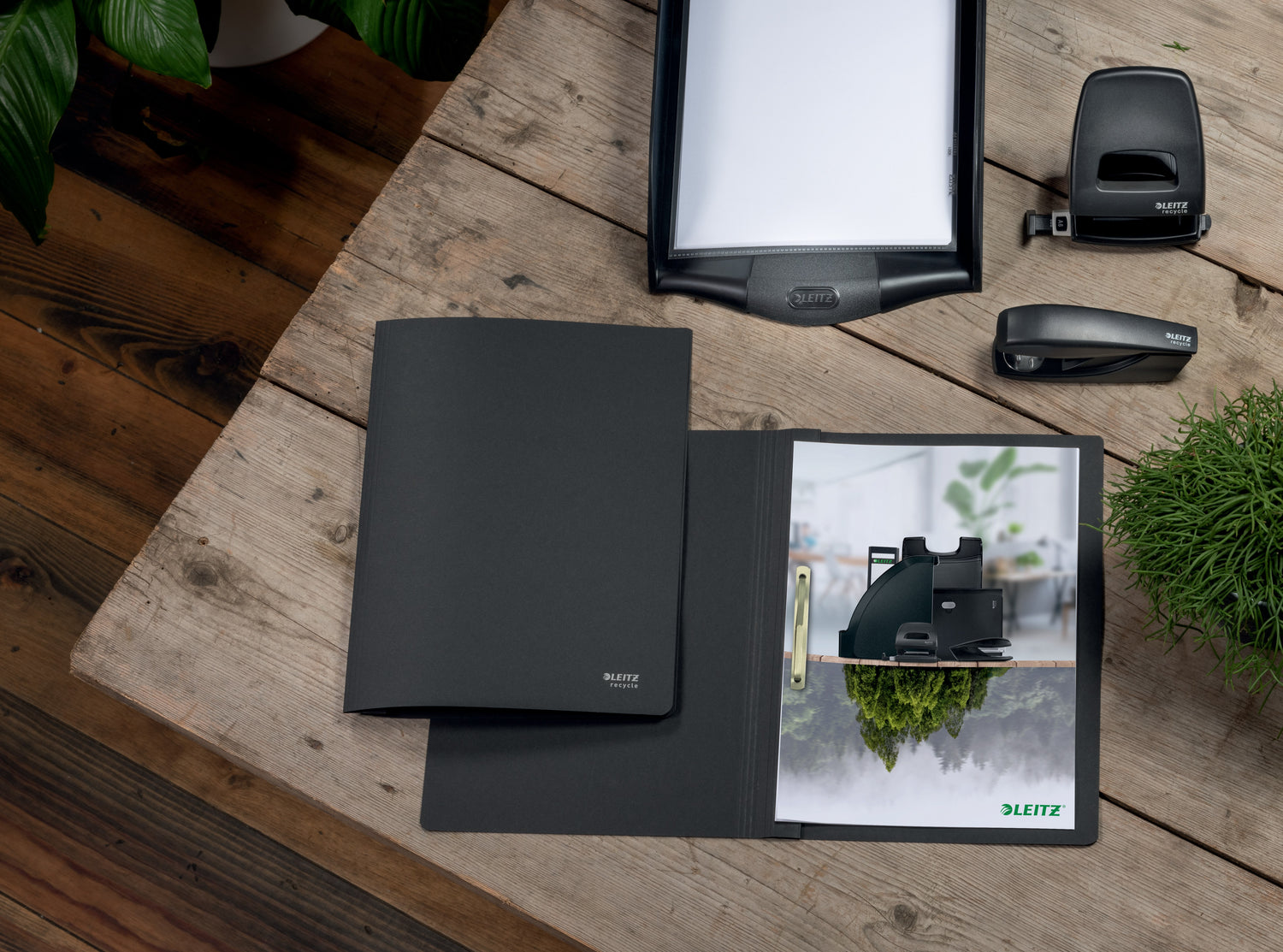 Tilbudsmappen passer til A4-format og kan rumme op til 250 hullede ark på 80 g.