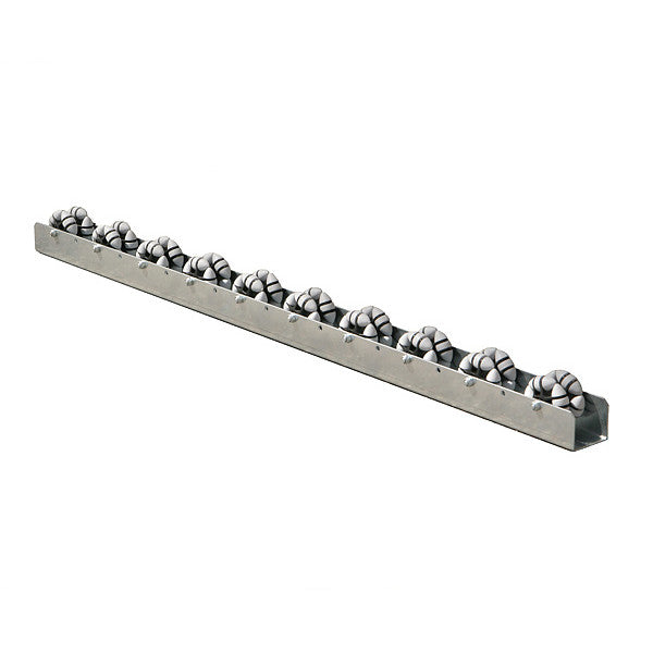 Tosidig rulleprofil med 10 par hjul pr. profil. Dobbeltmonterede hjul med diameter 80 mm. U-skinne i stål med hjul i hvid PVC.