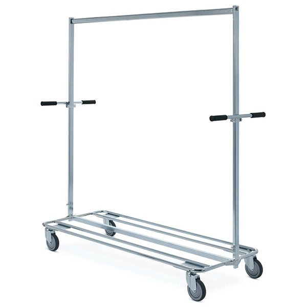 Tøjstativ med ekstra kraftig ramme og store hjul, som gør, at disse tøjstativer kan køres udendørs. For 1 højde.
