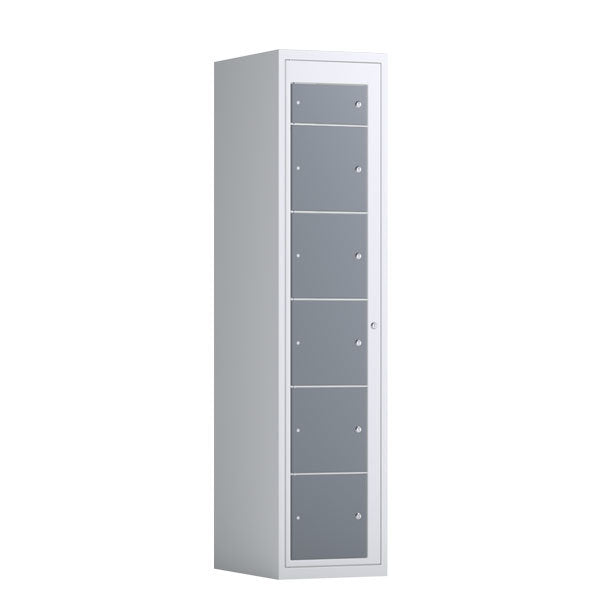 Skabet har 1x6 rum, hvor hver ansat kan få deres eget personlige rum.