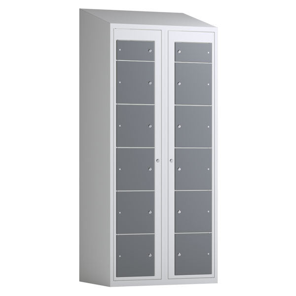 Tøjudleveringsskab 2x6 rum med skråt tag og antracit døre med cylinderlås