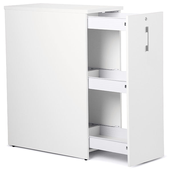 Towerskab i kontormøbelserien DNA, for tosidig brug og med udvendig bredde x dybde x højde, 400 x 800 x 1050 mm. Towerskabet har hvid kabinetfarve i kombination med hvid front.Specifikationer: