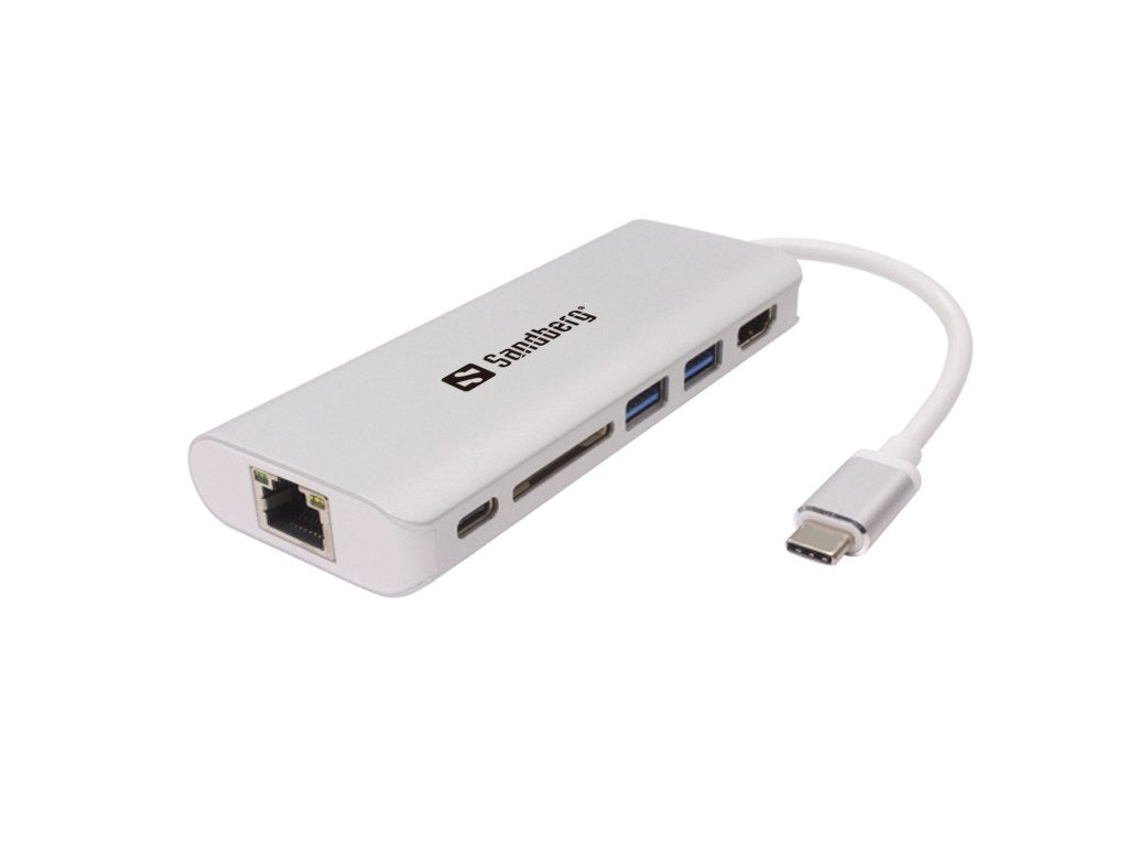 Sandberg USB-C Dock giver dig med ét produkt rigtig mange nyttige tilslutningsmuligheder til din computer med USB-C port. Med HDMI udgang kan du tilslutte ekstra skærm, TV eller projektor. Med USB 3.0 stikket kan du tilslutte eksternt USB udstyr. RJ45 stik til kablet netværkstilslutning. Oven i købet kan du med den indbyggede SD kortlæser læse og skrive direkte på SD hukommelseskort. USB-C stikket er videreført til strømtilslutning, så f.eks. din Macbook ikke løber tør for strøm, mens dock'en er tilsluttet.