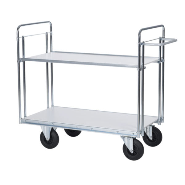 - Velegnet til intern transport og ordrepluk af kasser, værktøj og materialer i lager, værksted og produktion. - To rummelige hylder giver overblik og plads til større emner; den store hyldeflade på 1180 x 750 mm giver stabil understøttelse. - Gør det muligt at samle flere varer på én gang og reducere antallet af ture.