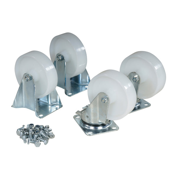 Vognsættet indeholder 2 drejelige og 2 faste nylonhjul med en diameter på 160 mm.