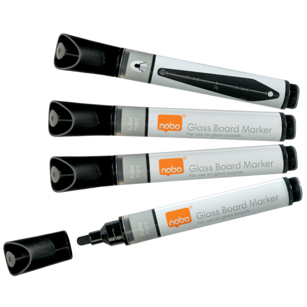 Disse ikke-permanente whiteboardmarkere er optimeret til brug på whiteboardoverflader af glas og har et fremragende blæklag. Blækket tørrer hurtigt og kan nemt fjernes med en tør klud. Disse penne med flydende blæk har også et praktisk vindue, der viser blækniveauet, så du aldrig løber tør på et afgørende tidspunkt. Fås i et udvalg af farver til at opfylde alle dine præsentationsbehov; ideel til skoler, kontorer og i hjemmet. Pakke med 4 stk. penne med en kuglespids på 3 mm, der giver sammenhængende, tykke og glatte linjer. Bruges sammen med et Nobo whiteboards af glas for at opnå optimal ydeevne.
