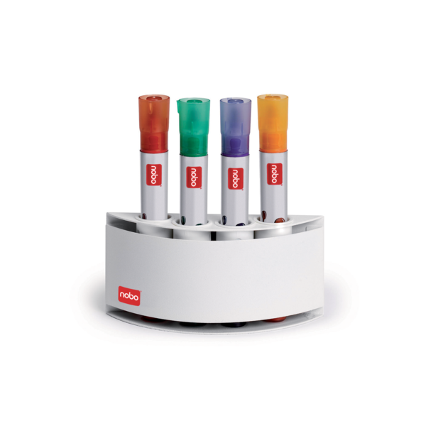 Magnetisk penneholder til 4 drywipe markere, op til maksimum 20mm diameter på pennene.