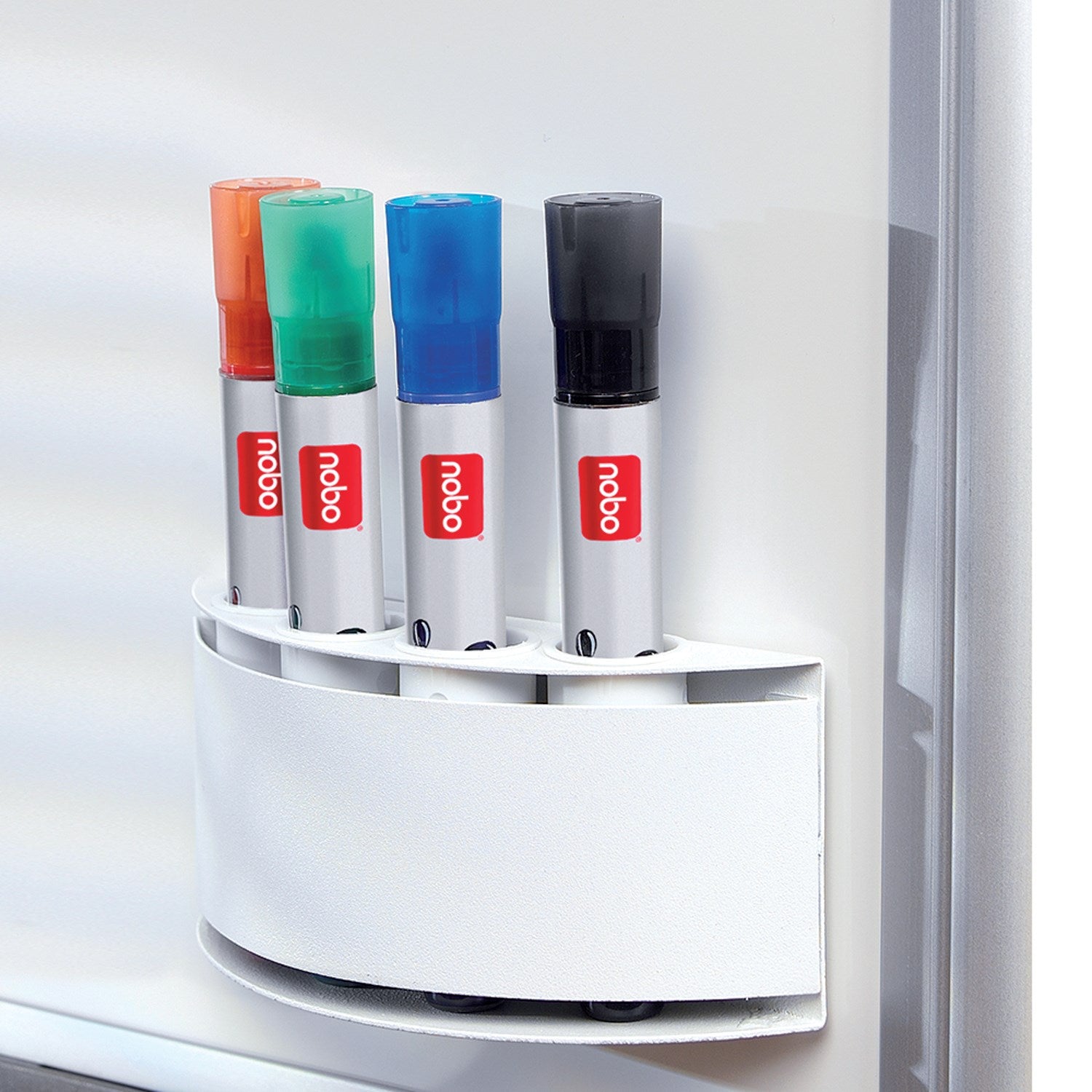 Denne magnetiske penneholder tager 4 drywipe markere og opbevarer dem i en korrekt position. Maksimum pennediameter: 20mm. Farve: Hvid - Hold dit arbejdssted pænt og ordentligt med denne penneholder - Sikrer dine penne er lige ved hånden - Holder 4 drywipe markere - Kapacitet op til maksimum 20mm diameter