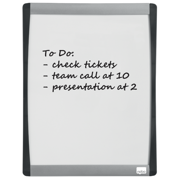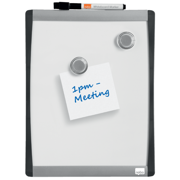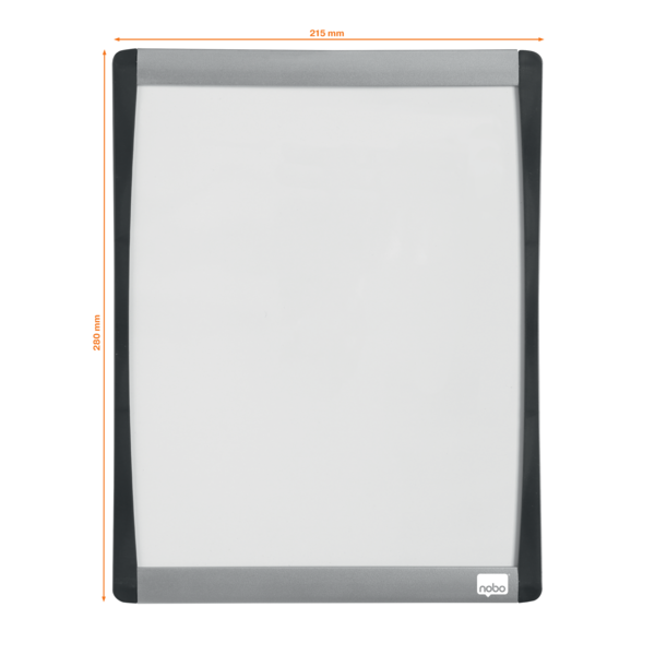 - Mini magnetisk whiteboard med sølv og sort buet ramme