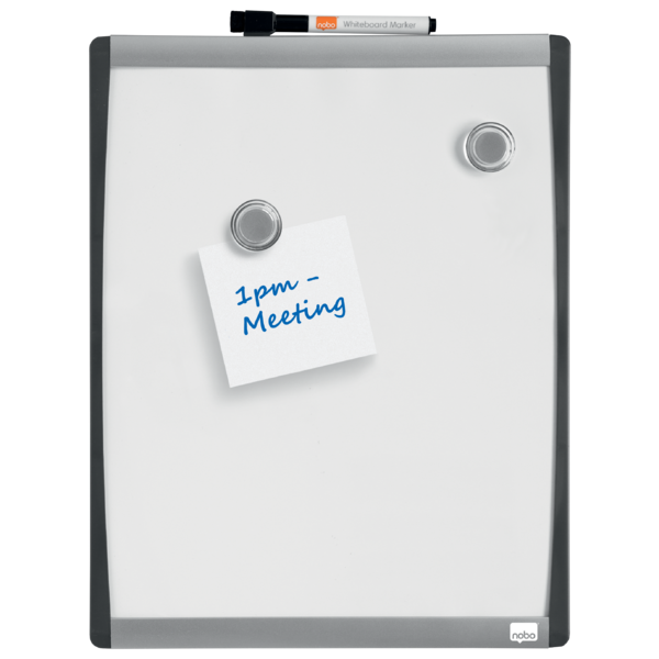 - Lille magnetisk tavle med sølv og sort buet ramme